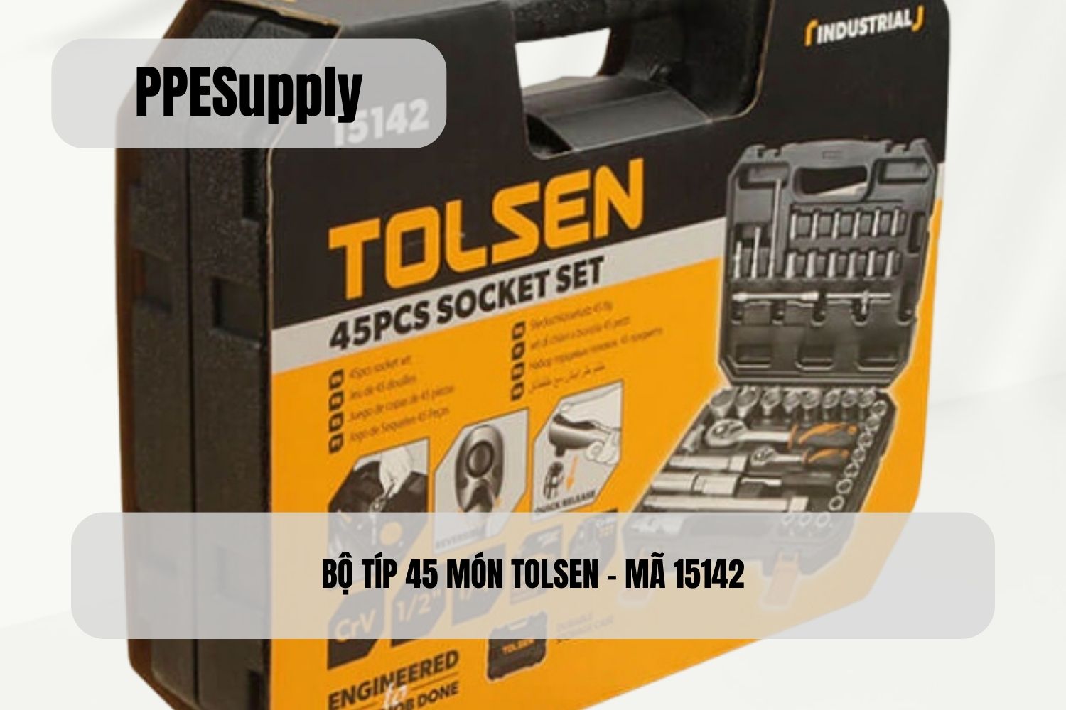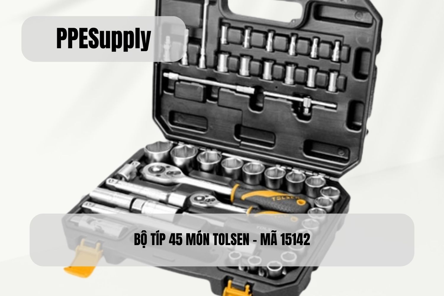 BỘ TÍP 45 MÓN TOLSEN 15142 là bộ dụng cụ sửa chữa đa năng, được thiết kế phục vụ cho công việc cơ khí, sửa chữa ô tô – xe máy, lắp ráp thiết bị và bảo trì kỹ thuật chuyên nghiệp. Bộ sản phẩm kết hợp đầy đủ đầu khẩu, cần tự động, thanh nối và phụ kiện cần thiết, đáp ứng tốt nhu cầu sử dụng từ cơ bản đến nâng cao trong nhiều môi trường làm việc khác nhau.