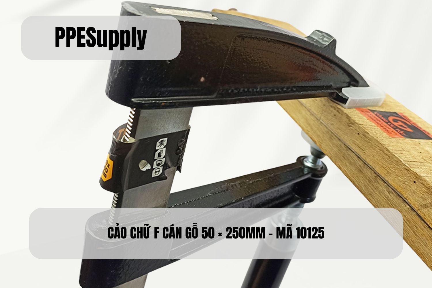Cảo chữ F 50 × 250mm Hành trình kẹp vừa, linh hoạt Thanh trượt mạ niken, chống gỉ Ty ren mạ kẽm, siết chắc Tay cầm gỗ, dễ kiểm soát lực