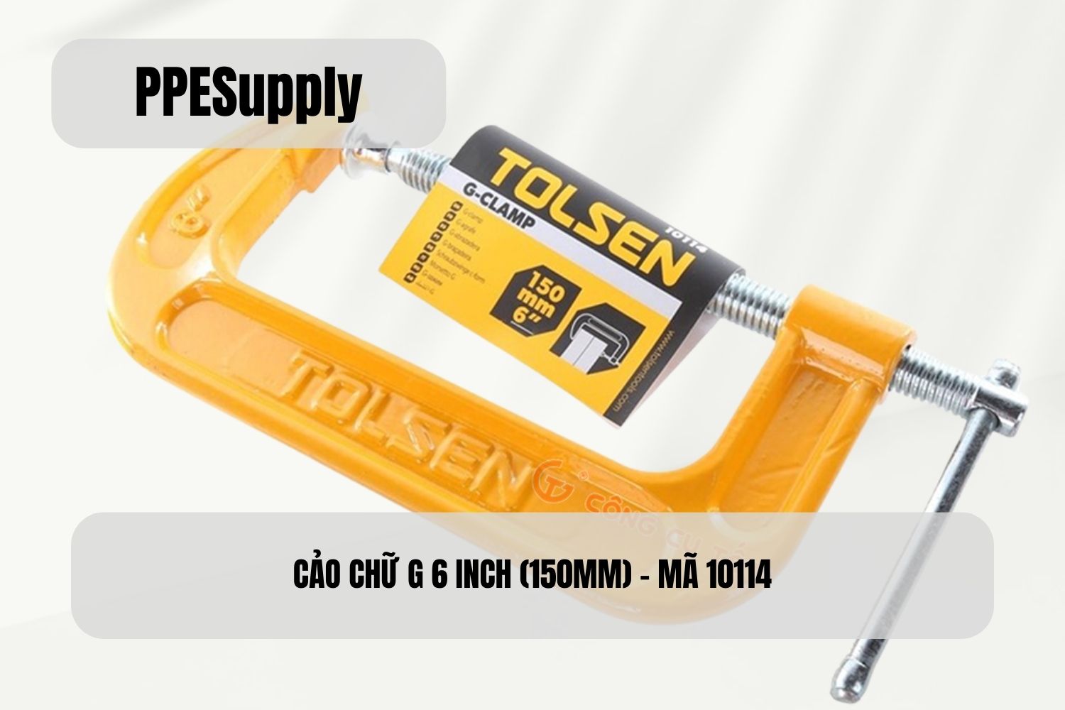 Cảo chữ G 6 inch (150mm) Thân kim loại sơn tĩnh điện bền bỉ Ty ren mạ kẽm, siết chắc, vận hành ổn định Tay vặn chữ T, dễ kiểm soát lực Phù hợp kẹp vật liệu dày và kích thước lớn hơn