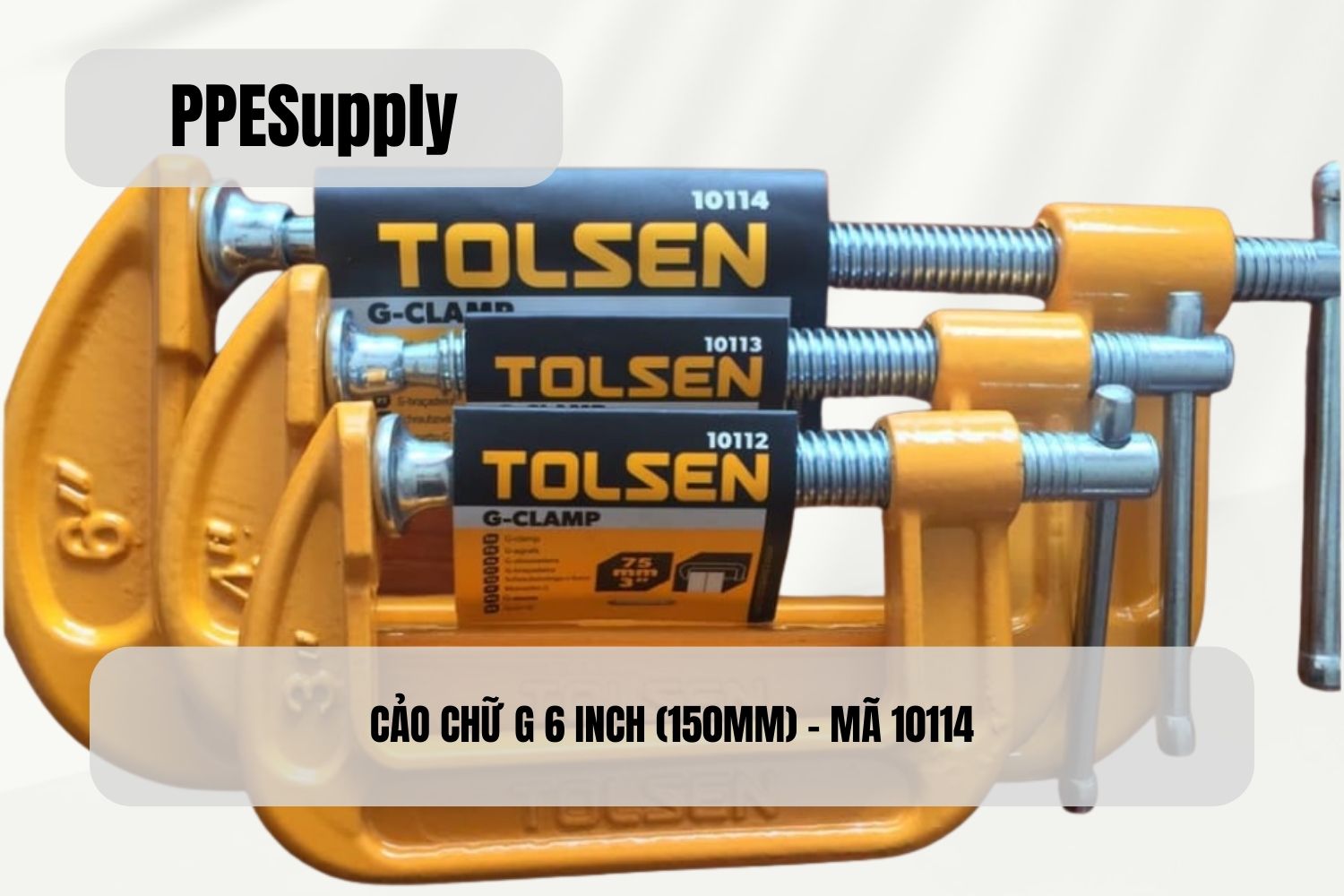 Cảo chữ G 6 inch (150mm) Thân kim loại sơn tĩnh điện bền bỉ Ty ren mạ kẽm, siết chắc, vận hành ổn định Tay vặn chữ T, dễ kiểm soát lực Phù hợp kẹp vật liệu dày và kích thước lớn hơn