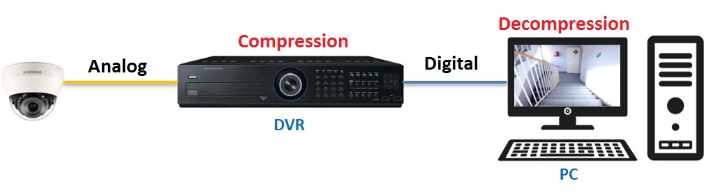 DVR chuyển đổi từ analog sang kỹ thuật số và nén video bằng cách sử dụng một số thuật toán codec của camera quan sát sẽ loại bỏ các phần thông tin video để tiết kiệm càng nhiều dung lượng lưu trữ càng tốt.