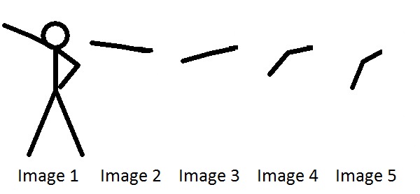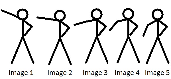 Trong ví dụ này, chúng tôi có 5 hình ảnh được phát theo trình tự nhanh để cho chúng tôi hình dung về chuyển động.