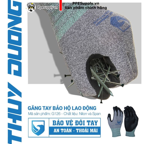 📌 Thông số kỹ thuật Mã sản phẩm: G126 Chất liệu: Nylon + Spandex, phủ cao su NBR Màu sắc: Đen – Xanh (tùy lô sản xuất) Tái sử dụng: Có Thương hiệu: Thùy Dương – Hàng Việt Nam chất lượng cao