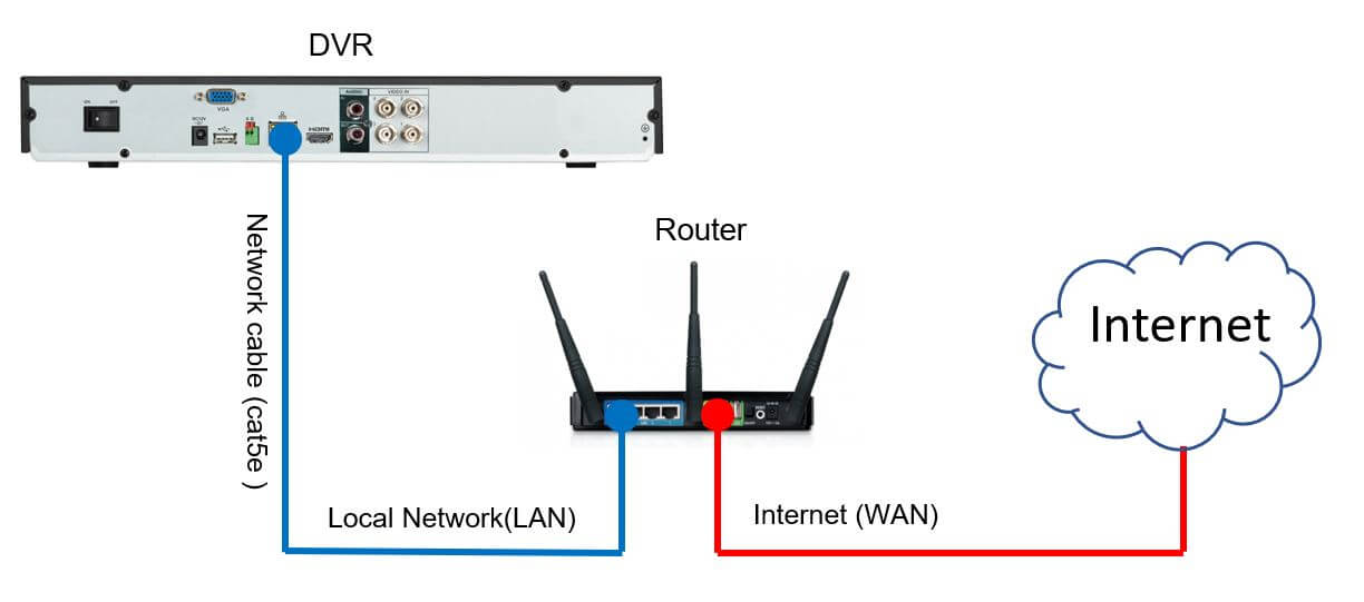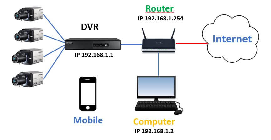 Hãy xem sơ đồ bên dưới để hiểu rõ hơn về cách bạn cần kết nối DVR trong mạng. Kết nối rất đơn giản.