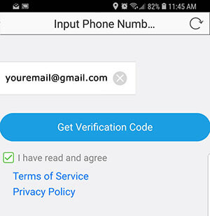 Nhập email của bạn và nhấp vào nút "Get Verification Code"