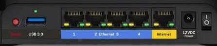 Lưu ý trong sơ đồ rằng bộ định tuyến có các cổng màu xanh được sử dụng để kết nối các thiết bị bên trong và cổng màu vàng để kết nối với Internet.