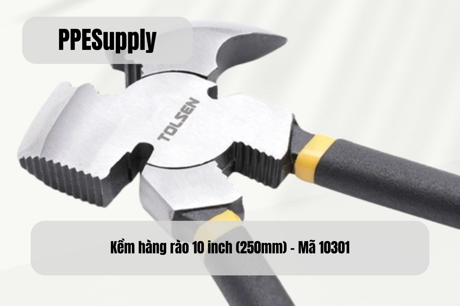 Kềm hàng rào 10" Tolsen 10301 là dòng kềm chuyên dụng dành cho các công việc thi công, sửa chữa và gia công hàng rào thép trong xây dựng dân dụng và công nghiệp nhẹ. Sản phẩm được thiết kế theo hướng đa năng, kết hợp khả năng cắt – kẹp – hỗ trợ đóng búa, giúp người dùng xử lý nhiều thao tác khác nhau chỉ với một dụng cụ duy nhất. Với kích thước 250mm, kềm mang lại lực thao tác tốt, phù hợp cho cả công việc thường xuyên lẫn sử dụng cường độ cao.