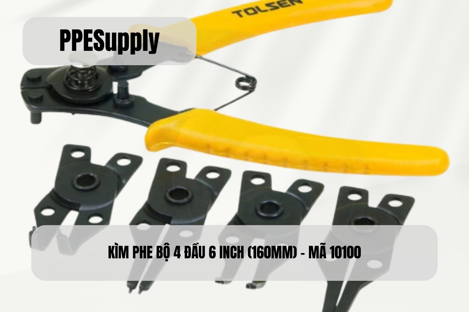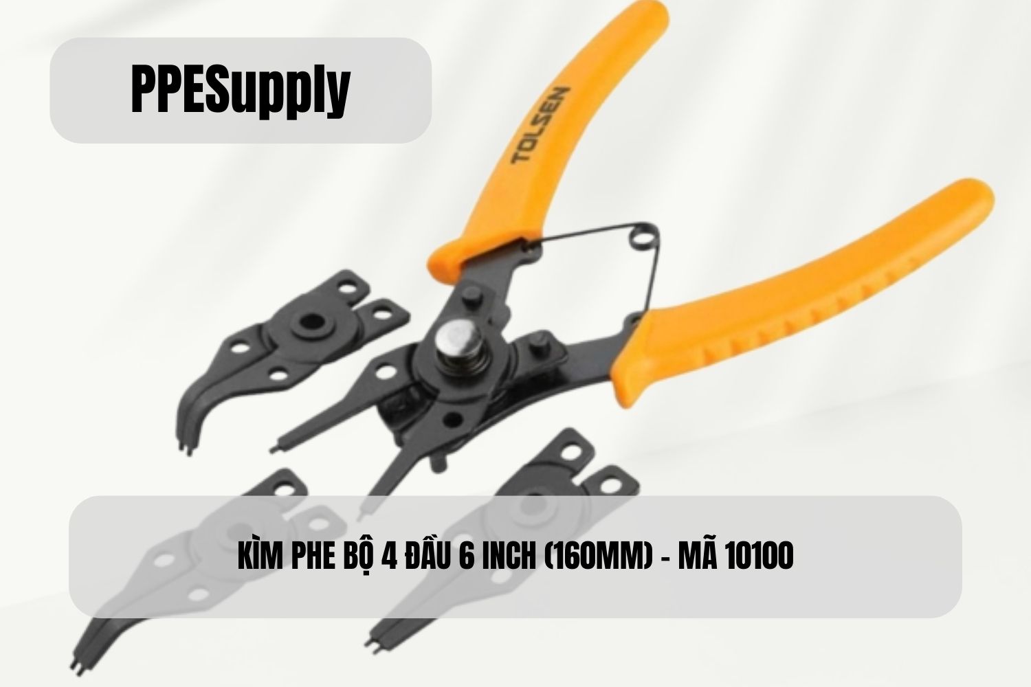 Kìm phe đa năng 6 inch (160mm) Bộ 4 đầu thay thế: thẳng 180°, cong 90°, cong 45° Thân thép Cr-V bền, chống biến dạng Thay đầu nhanh, thao tác linh hoạt Tay cầm nhựa, chống trượt