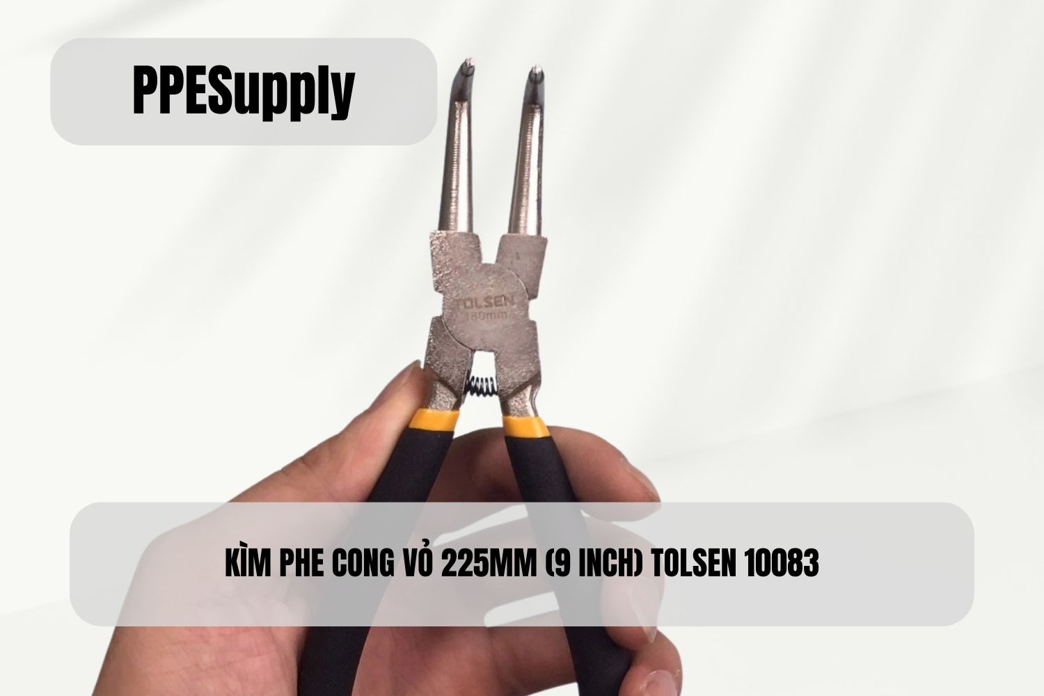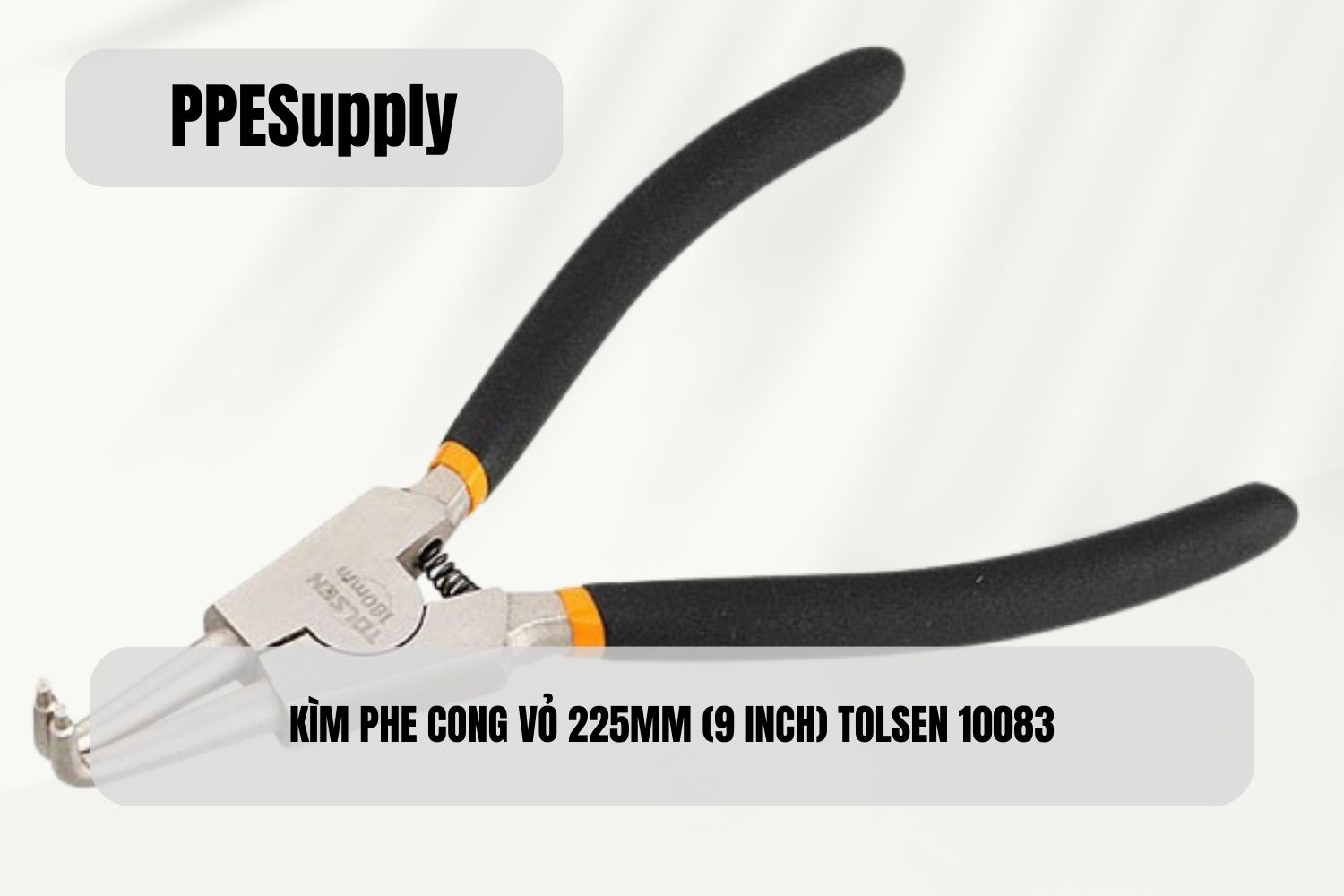 Kìm phe cong vỏ 225mm Tolsen 10083 là dụng cụ chuyên dụng để tháo và lắp phe (vòng hãm) ngoài trong các trường hợp vị trí lắp đặt khó tiếp cận, bị che khuất hoặc cần thao tác theo góc nghiêng. Thiết kế mũi cong 90 độ giúp đầu kìm tiếp cận vòng phe thuận lợi hơn so với mũi thẳng, đồng thời giảm nguy cơ trượt mũi khi thao tác lực lớn.