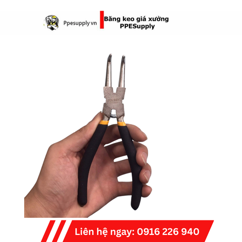 So với kìm phe cong 7”, phiên bản 9” mang lại tầm với xa hơn và lực mở mạnh hơn, đặc biệt hiệu quả khi làm việc với các vòng phe cứng hoặc có đường kính lớn. Mũi cong 90 độ giúp người dùng thao tác ở các vị trí không thể tiếp cận trực diện, như phe nằm sâu trong cụm chi tiết, rãnh khuất hoặc gần thành vỏ máy.
