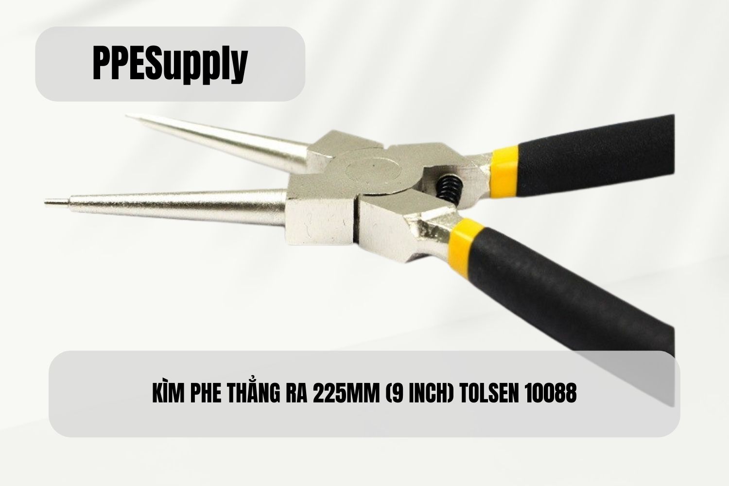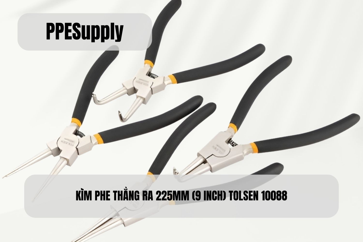 Kìm phe thẳng ra 225mm Tolsen 10088 là dụng cụ chuyên dùng để tháo và lắp phe (vòng hãm) ngoài trên trục, bạc đạn và các chi tiết cơ khí yêu cầu thao tác theo phương thẳng, trực diện. Thiết kế mũi thẳng giúp người dùng kiểm soát tốt lực mở, giữ đầu kìm ổn định trong rãnh phe, hạn chế trượt mũi khi thao tác.