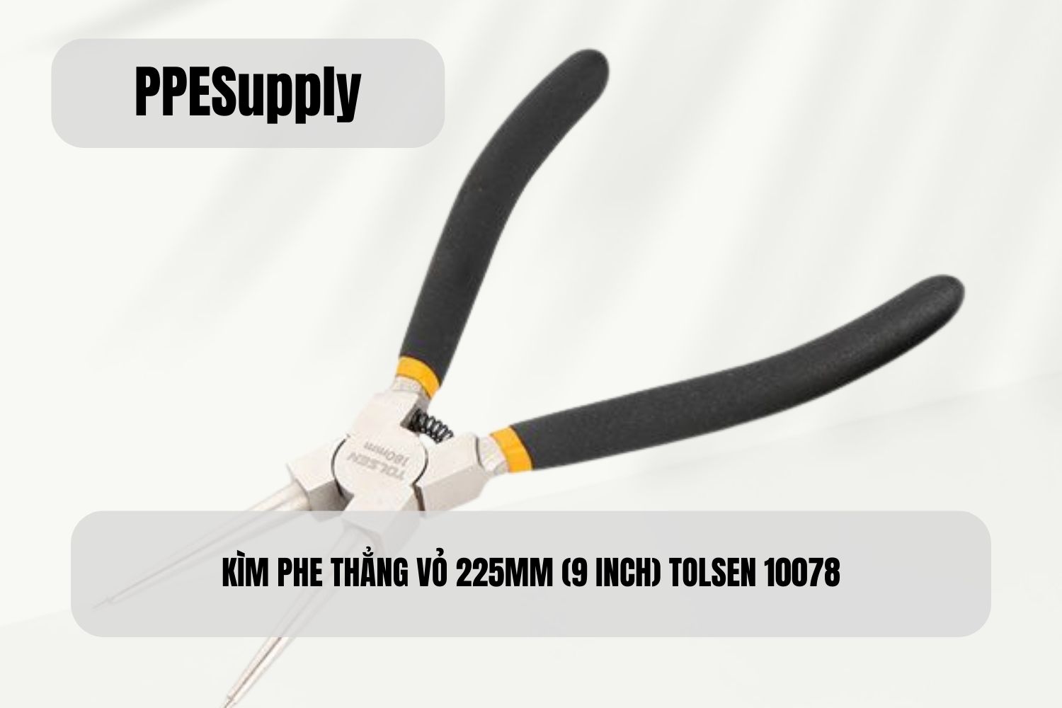 Kìm phe thẳng vỏ 9 inch (225mm) Dùng cho phe (vòng hãm) ngoài Thép Cr-V mạ niken, chống gỉ Mũi thẳng, thao tác chính xác Tay cầm nhựa, có lò xo trợ lực