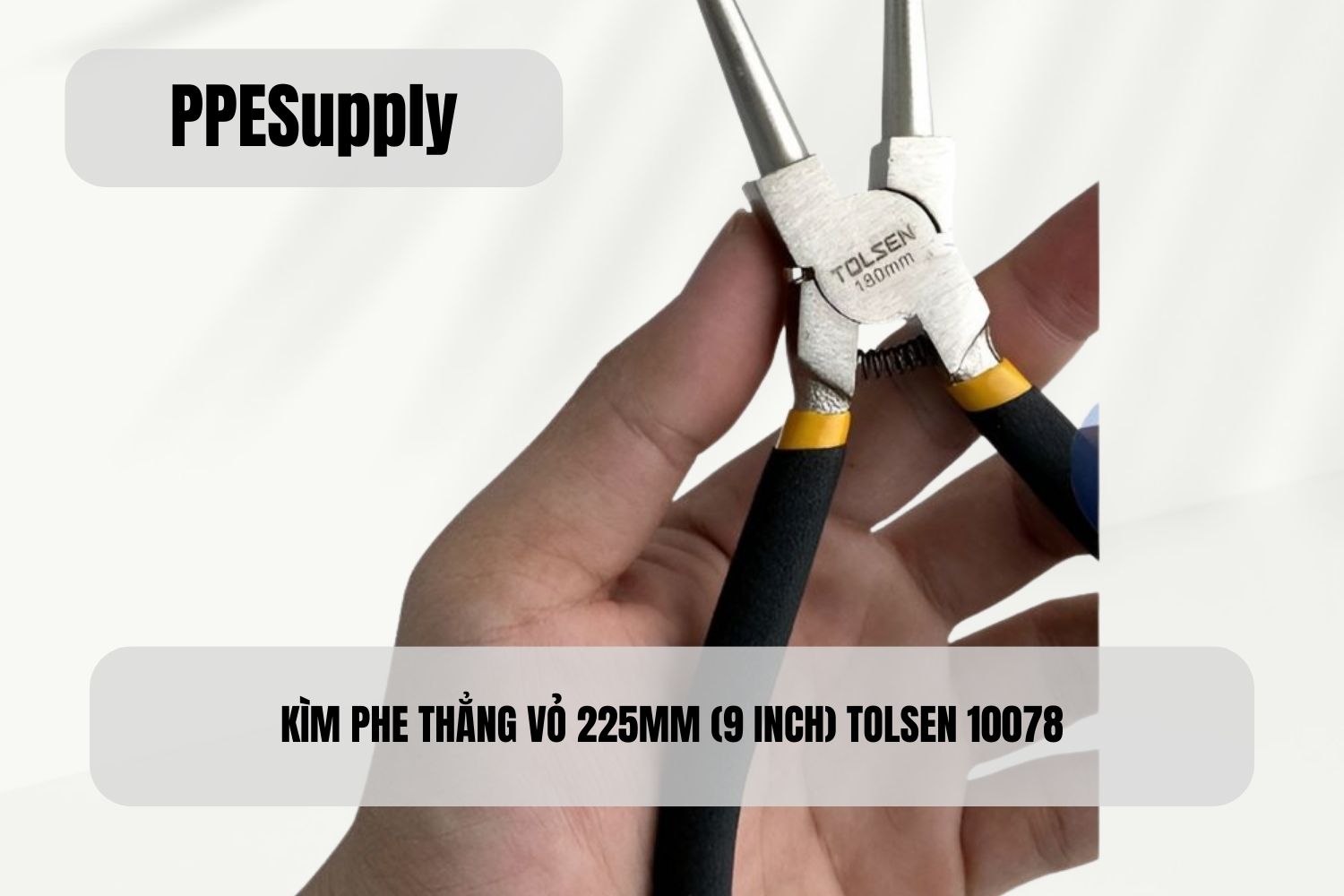 Kìm phe thẳng vỏ 225mm Tolsen 10078 là dụng cụ chuyên dùng để tháo và lắp phe (vòng hãm) ngoài trên trục, bạc đạn và các chi tiết cơ khí có kích thước trung bình đến lớn. Với thiết kế mũi thẳng và chiều dài 225mm, sản phẩm cho khả năng kiểm soát lực tốt, thao tác ổn định và chính xác trong quá trình làm việc.