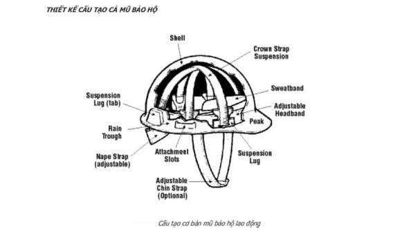 Mũ bảo hộ lao động có cấu tạo gồm 3 bộ phận chính: