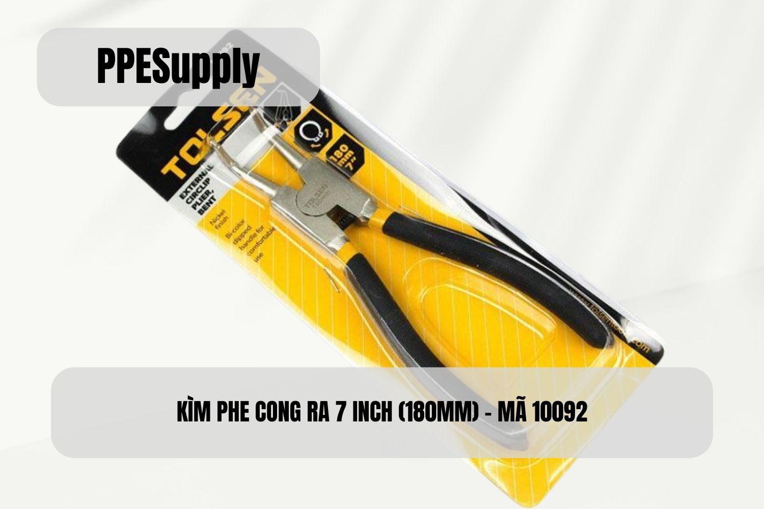 Kìm phe cong ra 7 inch 180mm là dụng cụ chuyên dùng để tháo và lắp phe (vòng hãm) ngoài trong các vị trí khuất, sâu hoặc khó thao tác trực diện. Thiết kế mũi cong 90 độ giúp người dùng tiếp cận vòng phe theo góc nghiêng, giảm thao tác xoay tay và hạn chế trượt mũi khi làm việc.